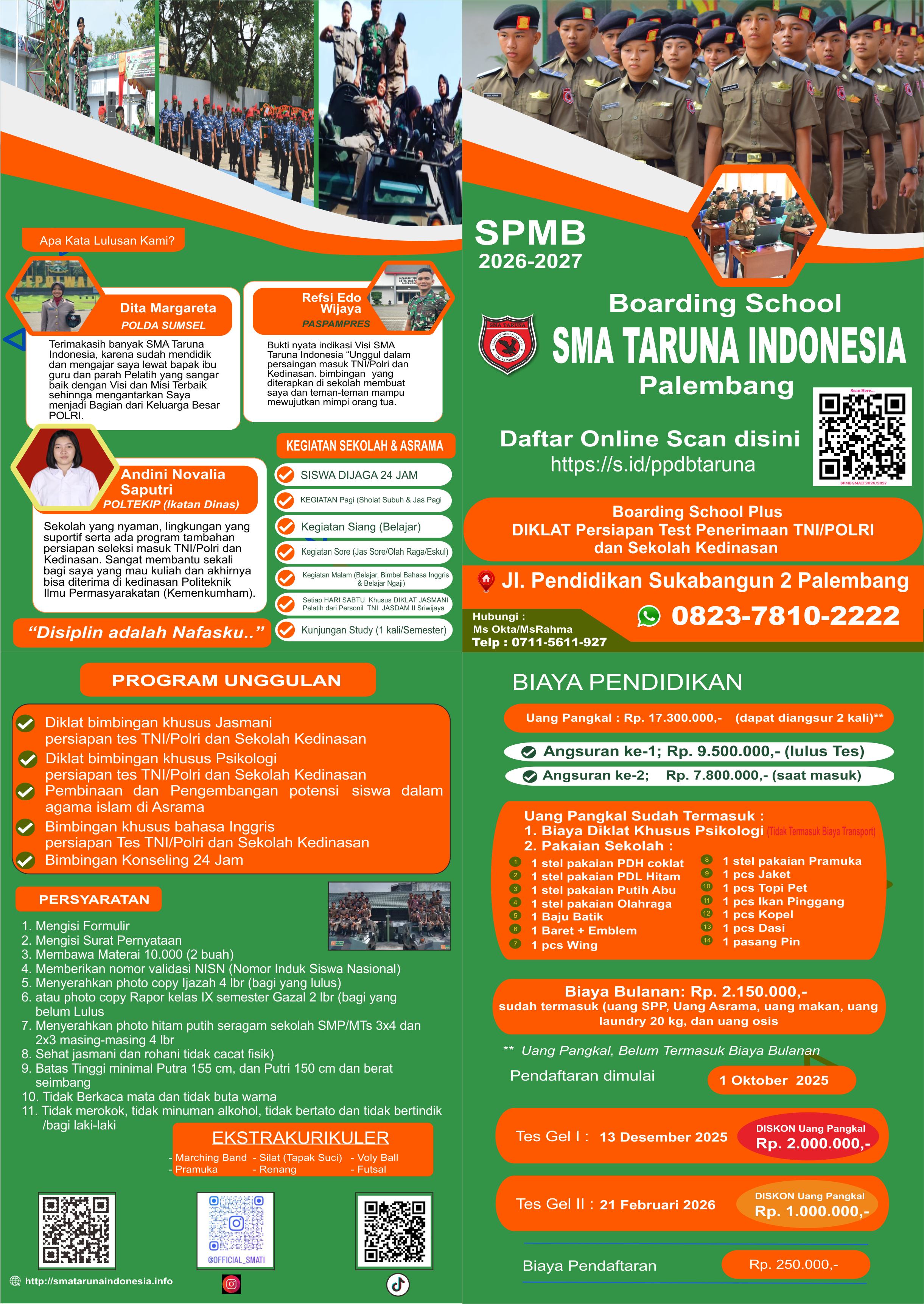 Kurikulum khusus tersebut meliputi mata pelajaran Kenusantaraan & Kepemimpinan dan Bela Negara.