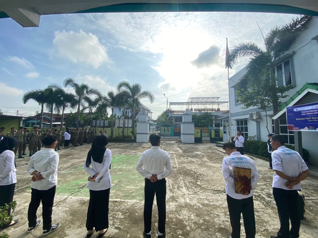 Dalam amanat upacara, kepala sekolah Bapak Arizal Yustian, S. Pd,. M. Si,. Gr menyampaikan bahwa Hari Guru Nasional adalah momen untuk mengingatkan kita semua akan peran vital seorang guru dalam membentuk karakter dan kecerdasan siswa. Beliau juga mengajak seluruh siswa untuk selalu menghormati guru, karena tanpa mereka, kita tidak akan sampai pada titik ini, di mana pendidikan adalah kunci utama untuk membuka gerbang masa depan yang lebih cerah.