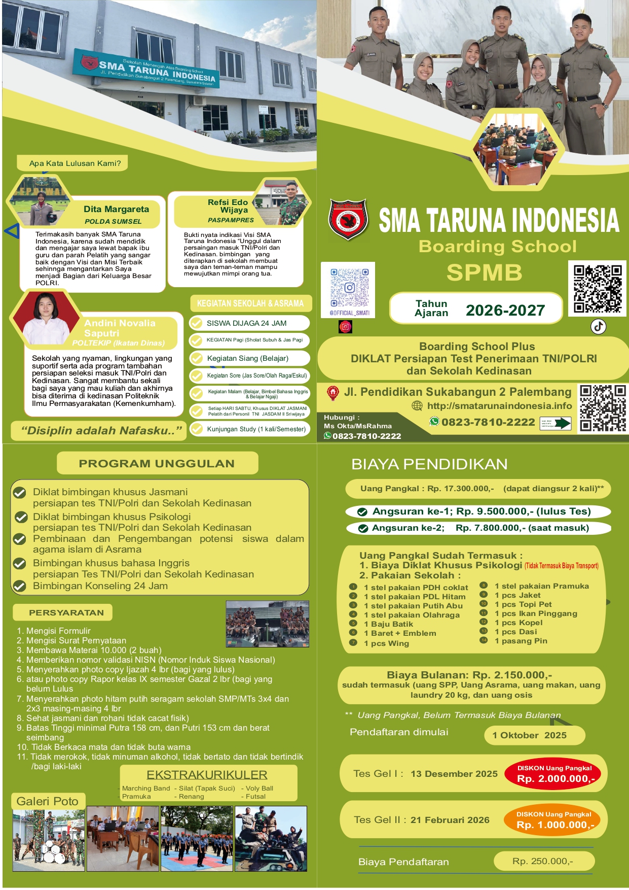 Halaman Sistem Penerimaan Murid Baru (SPMB) SMA TARUNA INDONESIA PALEMBANG